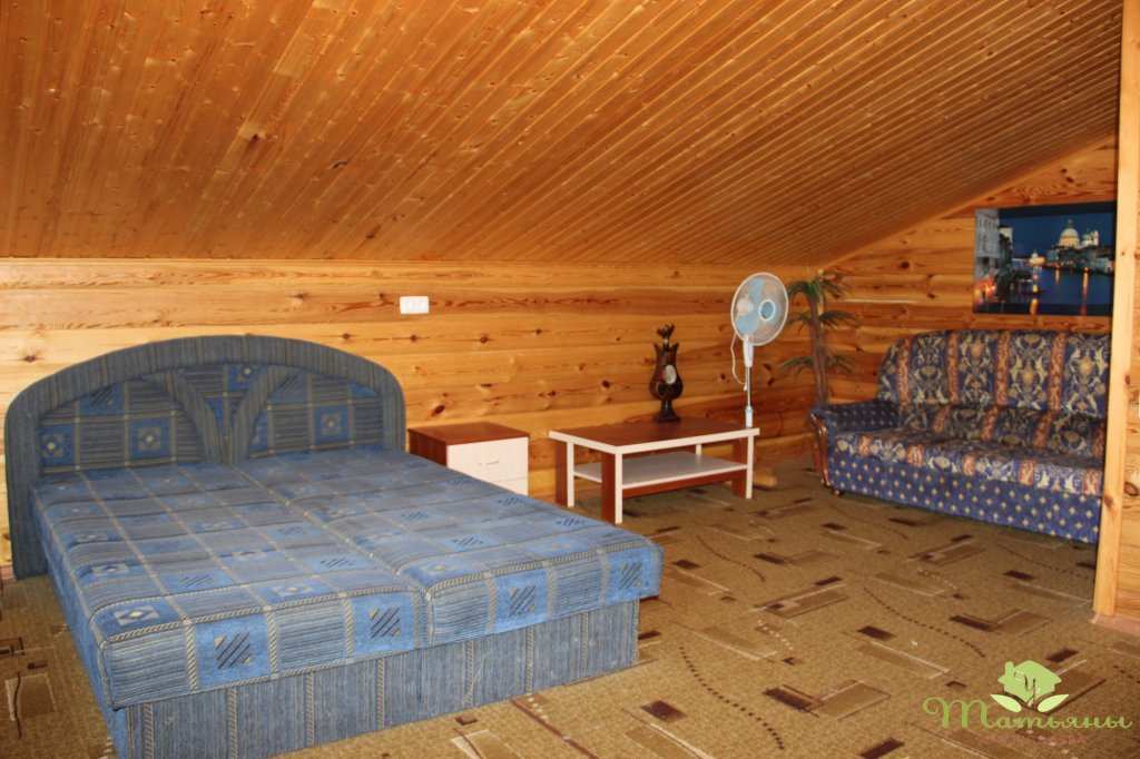 Усадьба «У Татьяны» имеет широкий номерной фонд хорошего качества. Два номера однокомнатных трехместных (двуспальная кровать, диван, отдельный туалет, душ, телевизор, холодильник, набор посуды, чайник). Двухэтажный коттедж для большой семьи с тремя комнатами оборудованными спальными местами. Столовая летом находится на уличной террасе с красивым видом на озеро, а в холодную пору в банкетном зале. Все постройки из натурального дерева, овощи и фрукты выращены хозяйкой в собственном огороде, используется для приготовления еды только родниковая вода. Хозяйка более 10 лет работала в общепите, общение с людьми, нахождение к ним подхода и общего языка для нее не проблема.