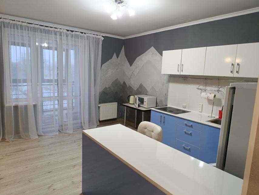 Комфортабельная квартира-студия в районе ТЦ Рига и ТЦ Европа. Кухня укоплектована: холодильник, микроволновая печь, чайник, варочная панель, барный стул. В комнате: большая двухспальная кровать с матрасом Вегас, диван, раздвижной стол для работы за компьютером, стул, тумба, комод. В ванной стиральная машина. В коридоре вместительный шкаф- купе. Расположена в большом тамбуре на две квартиры, в...